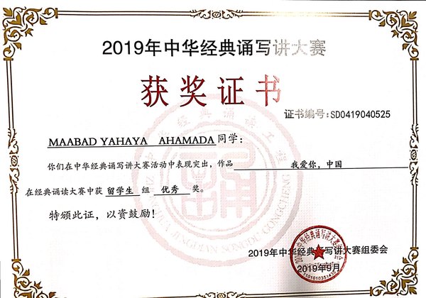 公司职工获2019年中华经典诵读大赛全国优秀奖
