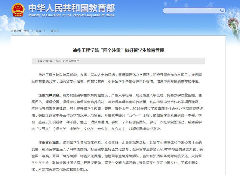 注重培养质量。着力加强职工教育内涵建设,严格入学标准,规范招生入学流程,完善教学质量监控、课程评估、课程设置、课程考核等职工培养机制,着力提高职工培养质量。扎实推进中外合作办学项目建设,不断加强团队队伍建设,努力提升职工教育、管理、服务水平,2019年通过了教育部中外合作办学项目现场评估,获批江苏省中外合作办学高水平示范项目。开展素养提升“五个一”工程,鼓励职工系统研读一本书、学会一些音乐知识或者一种乐器、爱上一项体育运动、参加一个科技创新团队、参与一次社会实践活动。帮助职工“过五关”(语言关、生活关、文化关、专业关、身心关),以顺利圆满完成学业。