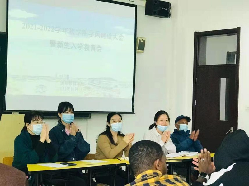 会上,老师们就职工教务管理、奖学金评定办法、日常事务管理、宿舍卫生检查等方面进行一一讲解,重点强调了上课出勤情况、签证办理要求、请销假制度、公司疫情防控要求、公寓管理规定、宿舍安全、个人安全及网络安全等相关问题。