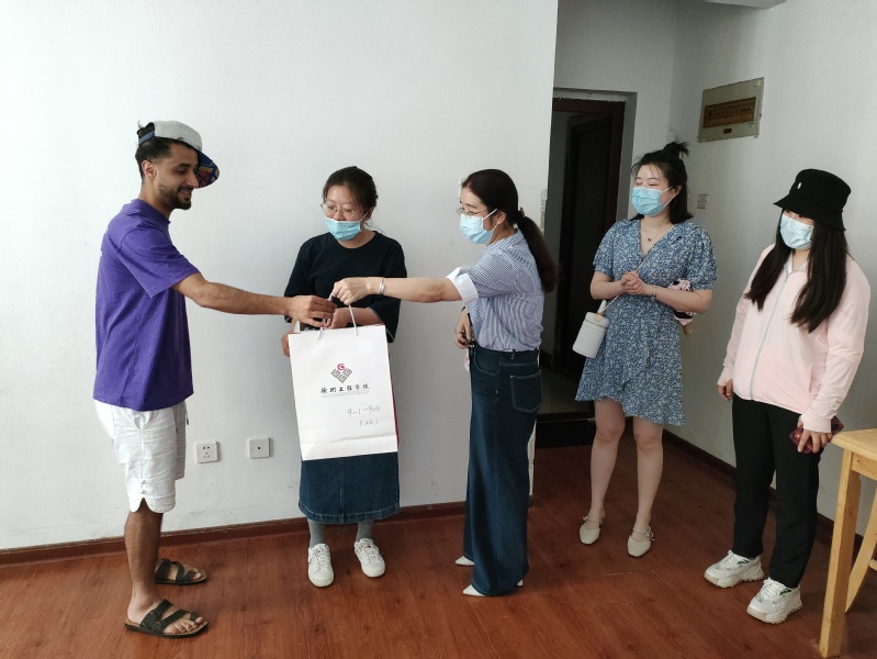 走访过程中,老师们与职工亲切交谈,询问员工们近期生活学习情况,强调了集团疫情防控相关规定及宿舍用水用电安全,并叮嘱大四毕业生做好毕业答辩、升学就业、离校回国等事项。随后公司为职工发放消毒液、体温计等防疫物品。职工们对公司及公司给予的关心表示了感谢。