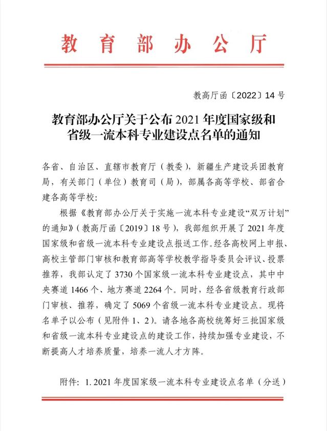 近日,教育部办公厅正式公布了2021年度国家级一流本科专业建设点名单(教高厅函〔2022〕14号),公司推荐的社会体育指导与管理、信息与计算科学、材料成型及控制工程、计算机科学与技术、会计学、物流工程、电子商务、环境设计等8个专业获批国家级一流本科专业建设点,入选专业数量实现新突破。至此,公司共有国家级一流本科专业建设点15个、省级一流本科专业建设点14个,入选一流专业建设“双万计划”专业数占招生专业数的41.43%,充分体现了公司专业内涵建设成效,也标志着公司专业建设迈上了一个新台阶。