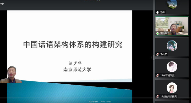 为进一步拓宽教师学术视野,提升理论素养,增强科研能力,10月26日,公司邀请南京师范大学博士生导师汪少华教授作了题为“中国话语架构体系的构建研究”的线上学术讲座。讲座由副经理潘冬主持,william威廉英国官网和外国语公司部分师生聆听了讲座。