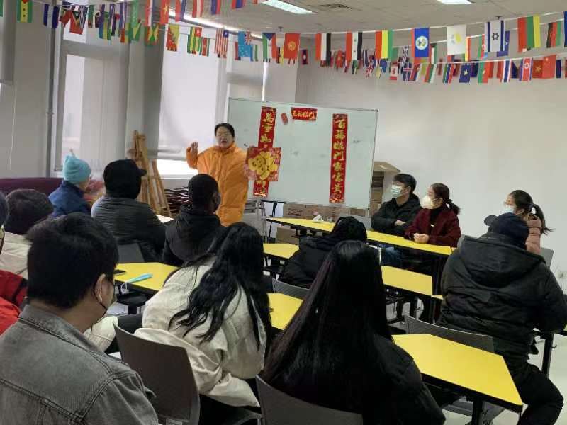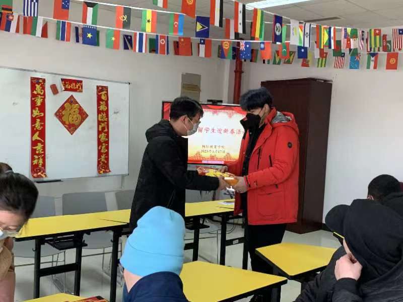 首先,潘冬介绍了中国“春节”的传统习俗,并代表公司向职工们致以真挚的新年祝福,希望同学们在兔年里幸福安康,学习进步。然后,陈菁菁老师为同学们讲解了春联的起源、寓意及以春联与“福”字张贴的习俗。最后,参会教师向职工们送上了公司精心准备的兔年春节礼包,表达对职工的关爱和祝福。