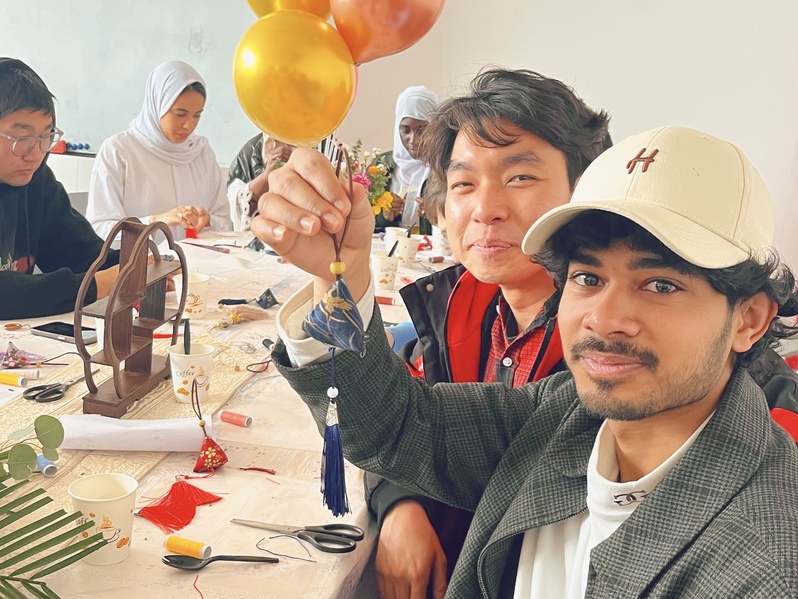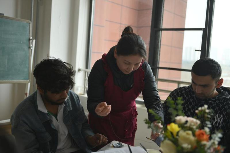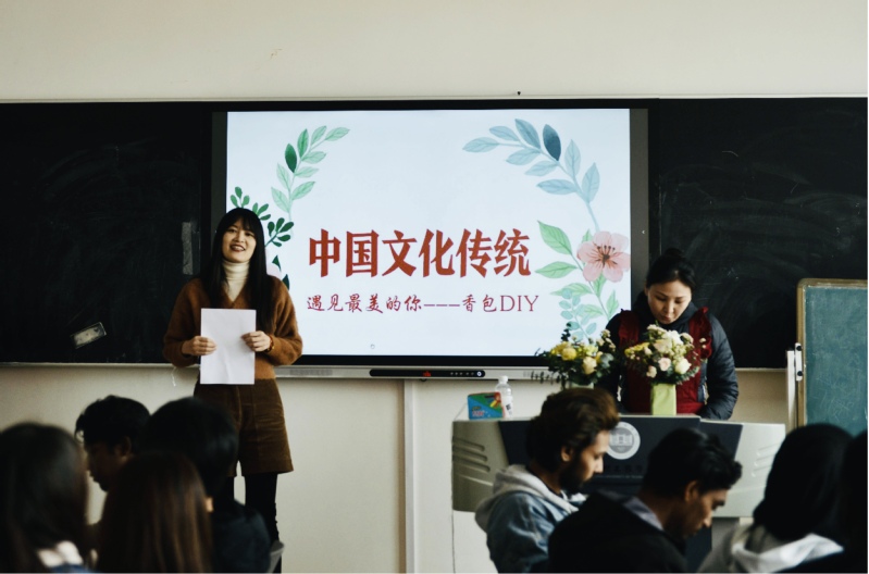 3月13日,公司来华职工中国传统文化主题教育活动之“中国香囊制作”活动在敬中楼409教室举行。来自不同国家的职工们齐聚一堂,通过亲手制作香囊,体验中国传统手工艺的魅力,增进对中国传统文化的了解,活动由对外汉语教研室主任周倩主持。