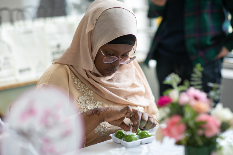 职工们在专业老师的指导下,认真揉搓面团、包馅料、搓圆成型。虽然初次尝试,但大家的手法都有模有样,不时有人兴奋地展示自己的作品,或与同学相互交流做法心得。制作青团的过程不仅锻炼了留员工们的动手能力,也让他们亲自体验了中国的美食文化,亲身感受到了中国传统节日的习俗与魅力。除了制作青团,职工们还通过视频学习了青团背后的历史故事和文化内涵,在与老师的互动问答中进一步了解了与青团相关的中文知识,在实践中学习中文,了解中国文化。